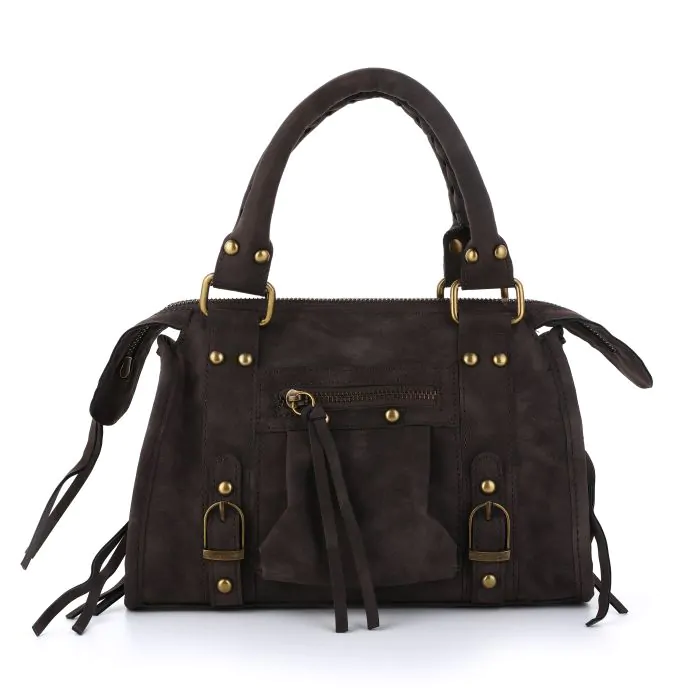 Deze stijlvolle handtas in taupe kleur straalt een stoere, vintage charme uit. De tas is afgewerkt met antiekgouden studs, gespen en speelse rits details, wat zorgt voor een robuuste maar toch vrouwelijke uitstraling. Dankzij de stevige handvatten en afneembare schouderriem is deze tas zowel praktisch als veelzijdig in gebruik. Ideaal voor dagelijks gebruik met net dat beetje extra karakter.