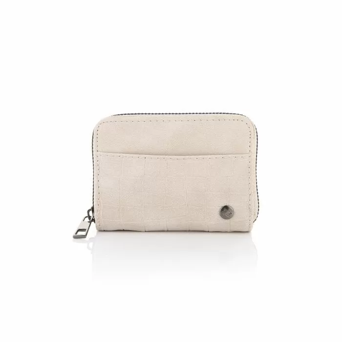 Een stijlvolle twist op een compacte klassieker. Deze elegante portemonnee in een lichte crèmekleur is voorzien van een subtiele krokodillenstructuur en is perfect voor dagelijks gebruik. Compact, maar verrassend ruim.