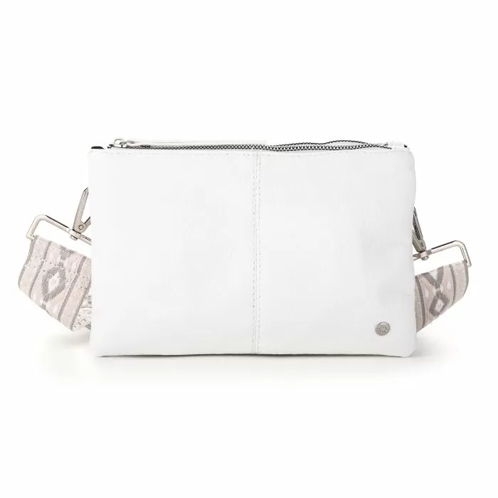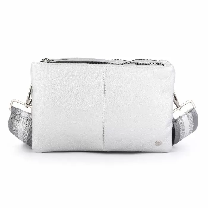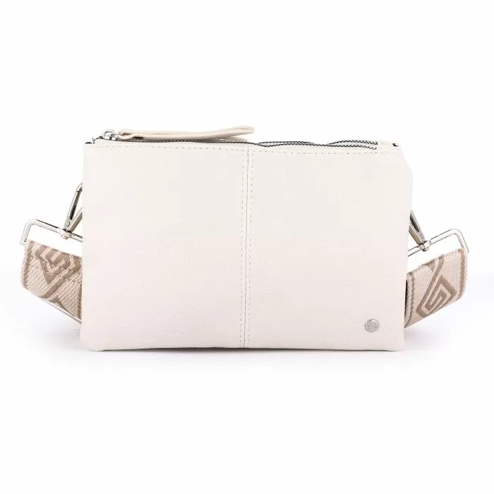 Deze elegante witte crossbody tas is een toonbeeld van minimalisme met een speelse twist. De tas is uitgevoerd in glad kunstleer met een cleane, moderne look. De brede schouderband in zachtroze en grijstinten voegt een grafisch accent toe, waardoor deze tas zowel tijdloos als trendy aanvoelt.