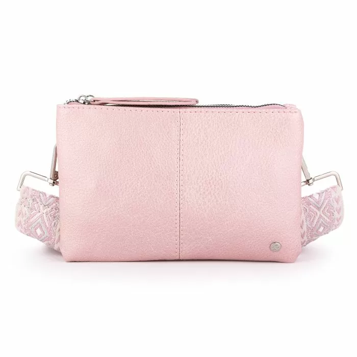 • Band: Verstelbare brede geweven schouderband met geometrisch patroon